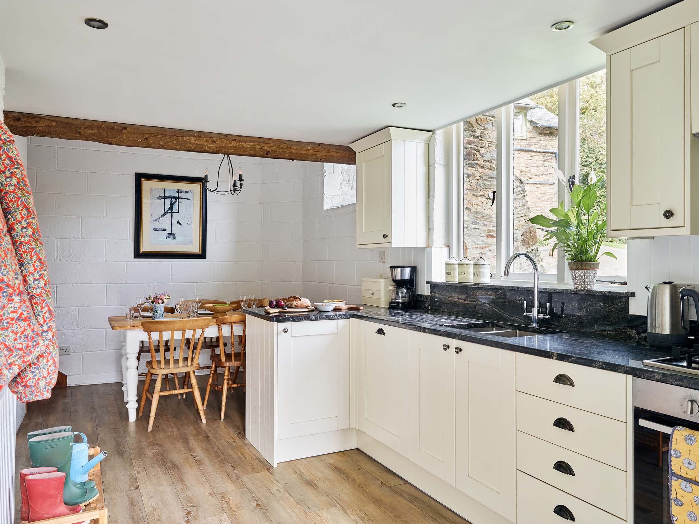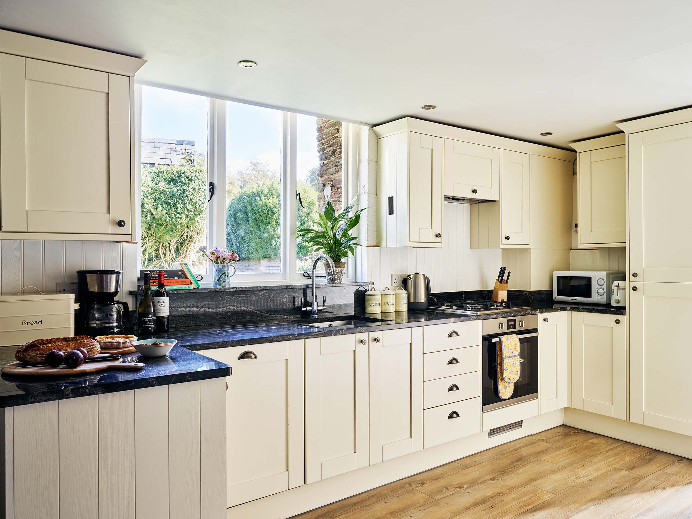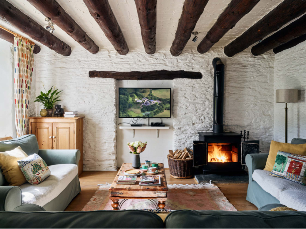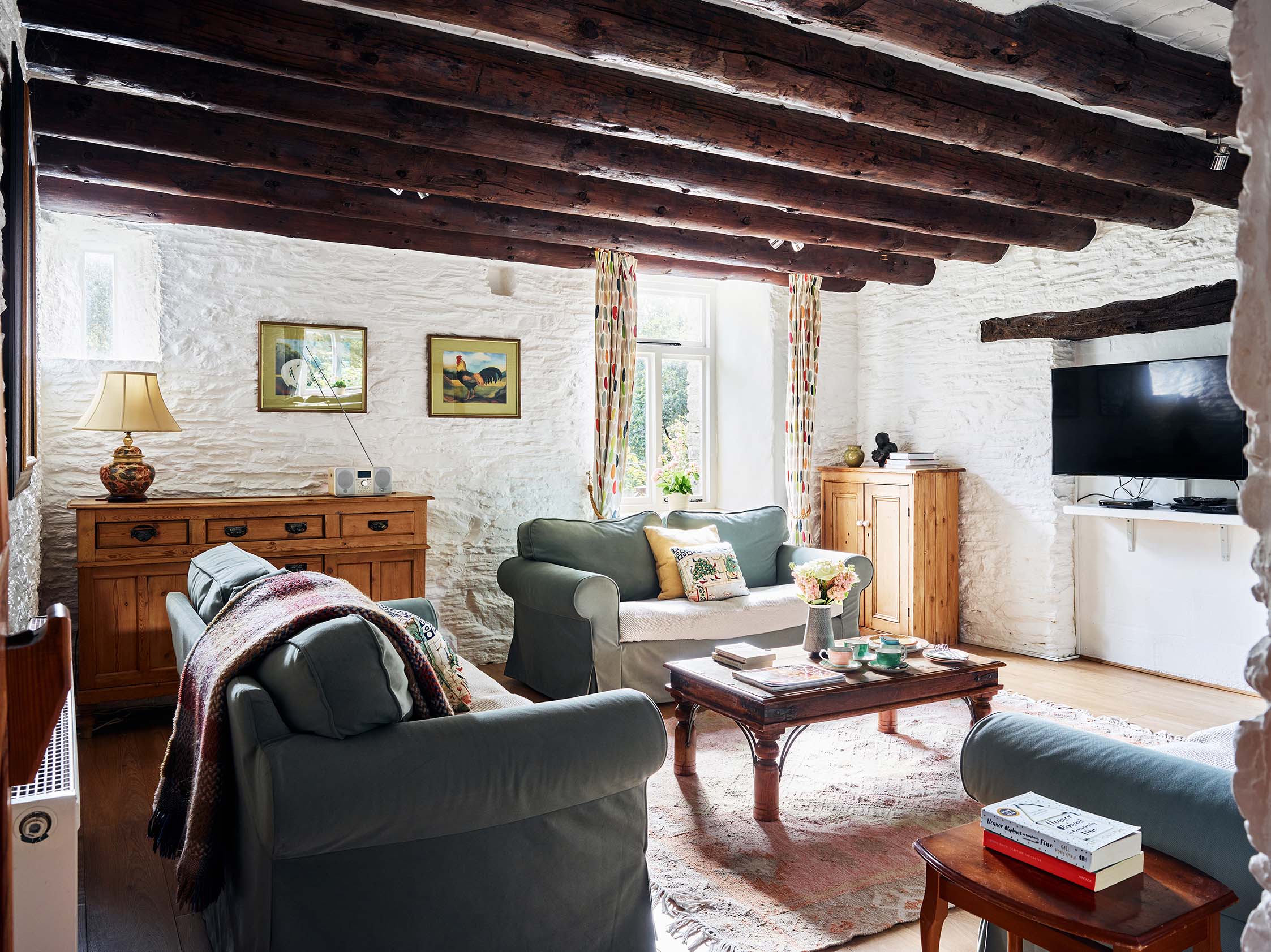 The Granary spreads across three floors, giving everyone room to find their own corner. Downstairs, a well-appointed kitchen flows into a separate living area with log burner, comfy sofas and a wall-mounted TV stocked with DVDs and books for rainy days.