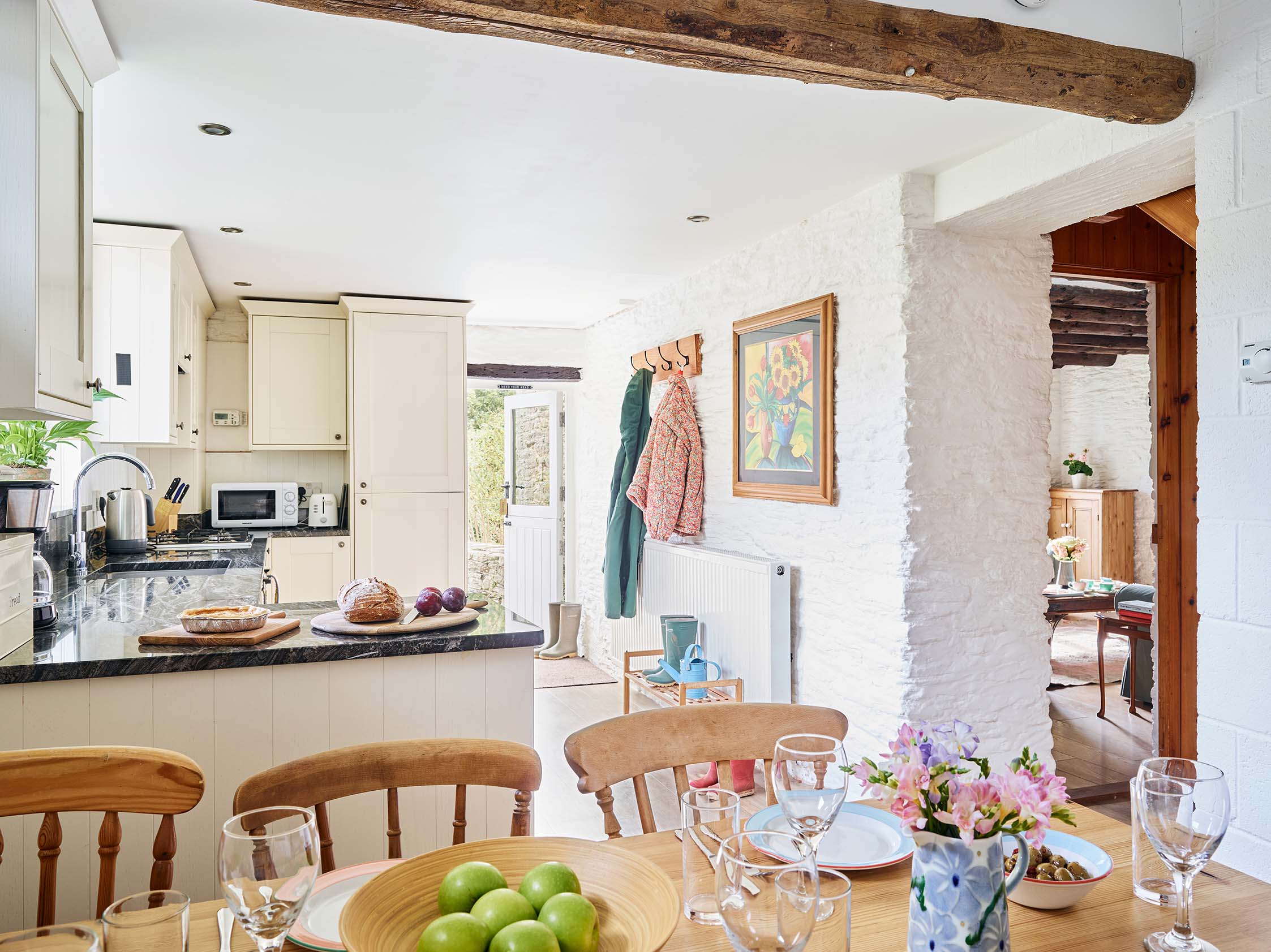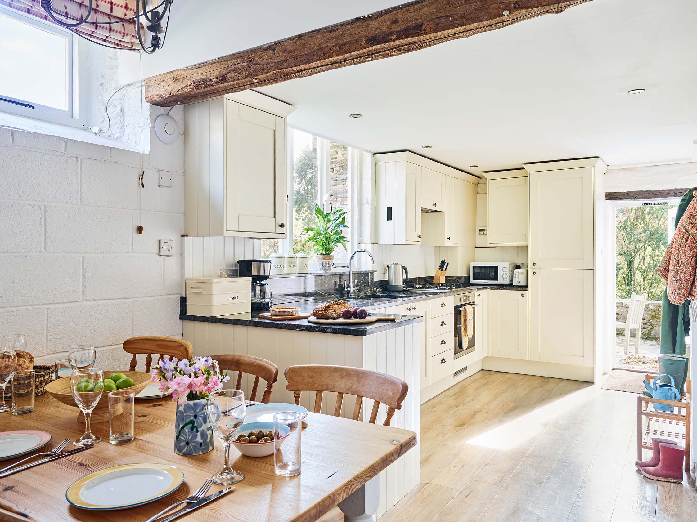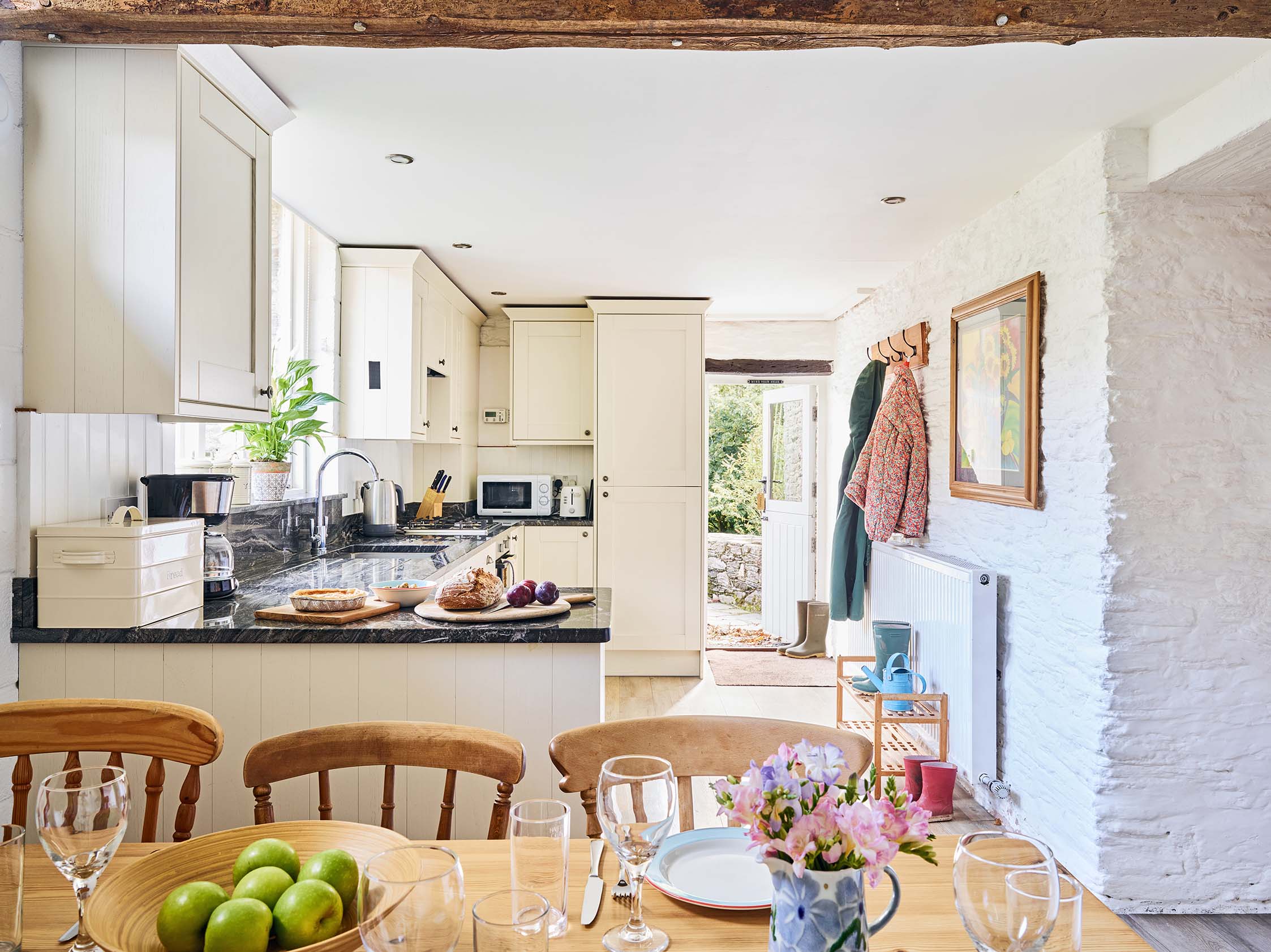 The Granary spreads across three floors, giving everyone room to find their own corner. Downstairs, a well-appointed kitchen flows into a separate living area with log burner, comfy sofas and a wall-mounted TV stocked with DVDs and books for rainy days.